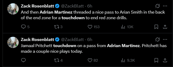 - Adrian Martinez had one of his best days of camp, throwing multiple TD’s and connecting with rookie tight end Mason Taylor on a deep shot down the field.